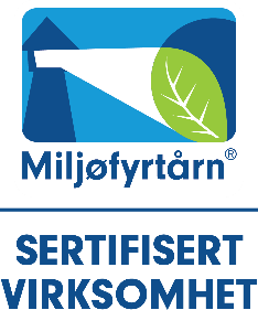 Vi er miljøfyrtårn sertifisert! Vi ber gjerne om dine innspill til forbedringer.